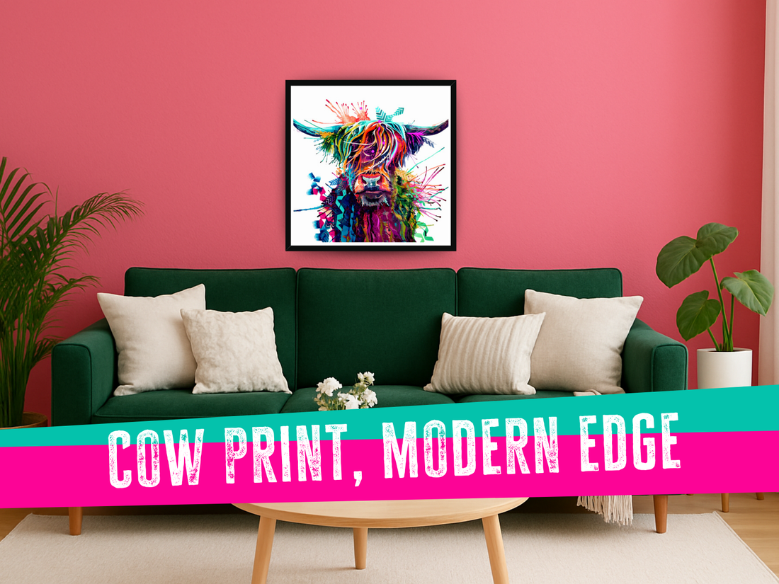 Cow prints aren’t just for country kitchens anymore - they’ve broken into the world of modern interiors, and honestly, I love that for them. I’ve seen my colourful cow prints hung in sleek city apartments, ultra-minimalist homes, and even in high-contrast monochrome spaces.