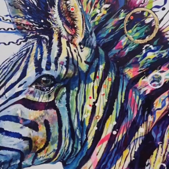Sarah has been painting animals in this style for nearly a decade, perfecting her unique painting method, a wonderous mix of hand painted geometric pattern and fluid paint splashes. She has a talent for making animals come alive, like they’re waiting to jump off the wall and have a cuddle. Easy to fall in love with them, because they feel like your best friend.