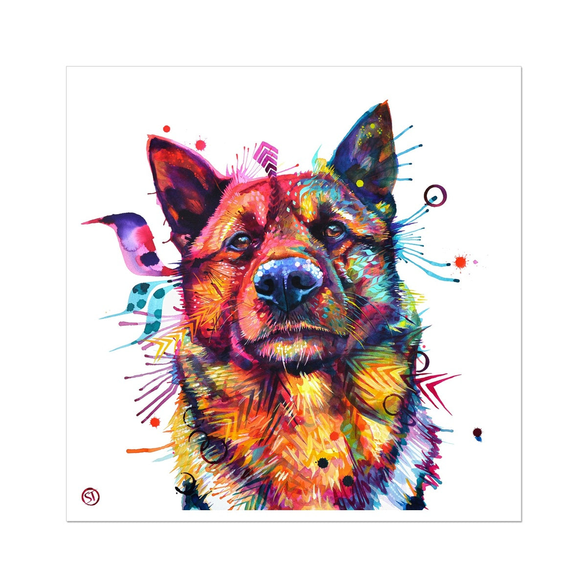 Sarah has been painting animals in this style for nearly a decade, perfecting her unique painting method, a wonderous mix of hand painted geometric pattern and fluid paint splashes. She has a talent for making animals come alive, like they’re waiting to jump off the wall and have a cuddle. Easy to fall in love with them, because they feel like your best friend.
