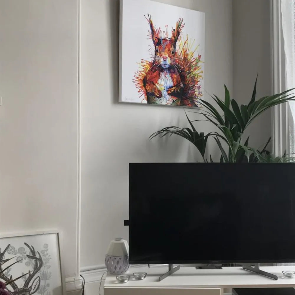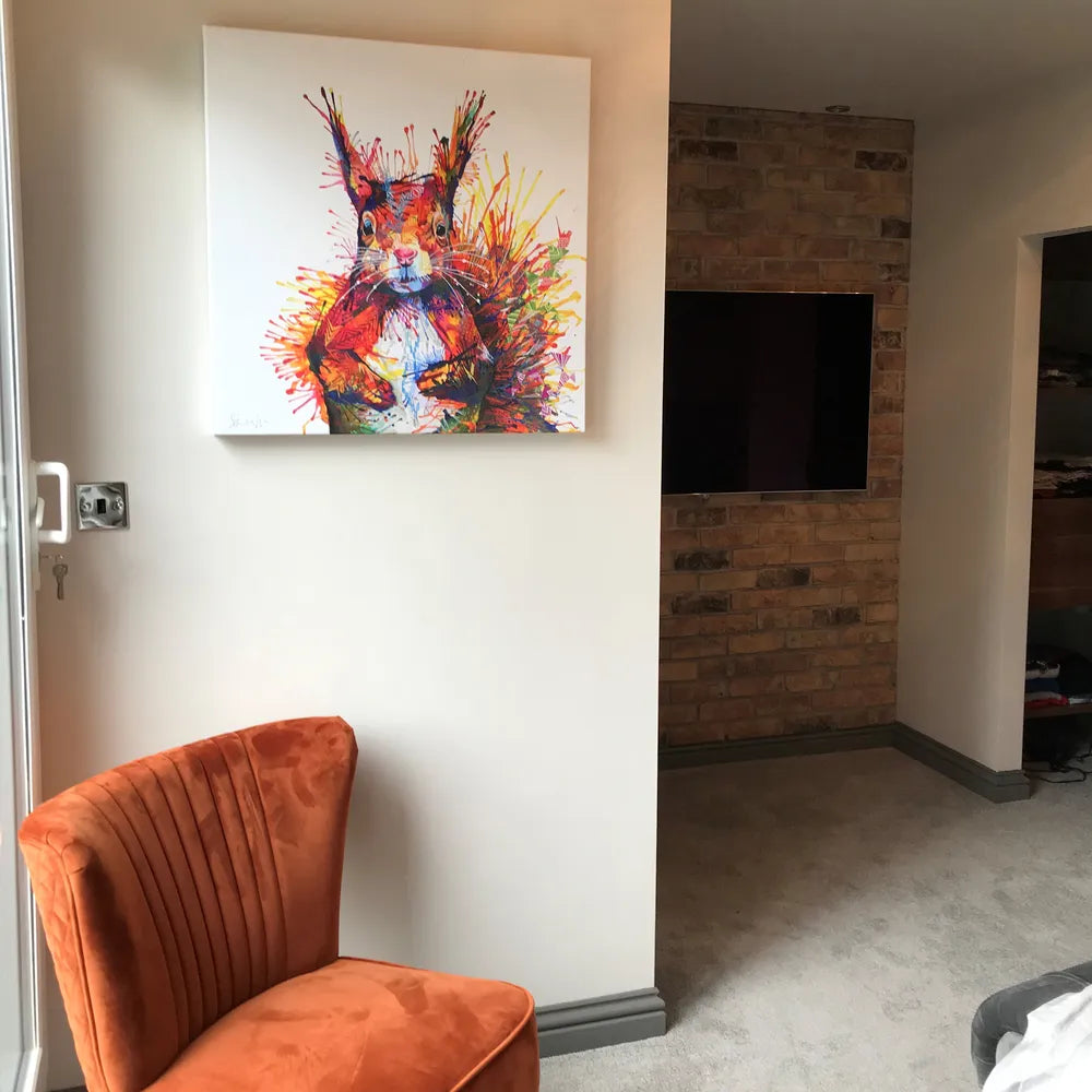 Sarah has been painting animals in this style for nearly a decade, perfecting her unique painting method, a wonderous mix of hand painted geometric pattern and fluid paint splashes. She has a talent for making animals come alive, like they’re waiting to jump off the wall and have a cuddle. Easy to fall in love with them, because they feel like your best friend.
