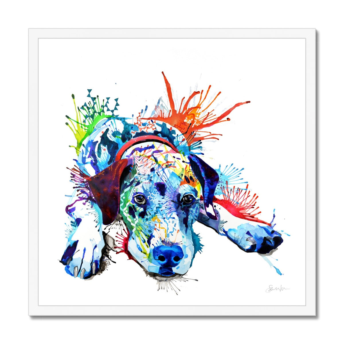 Sarah has been painting animals in this style for nearly a decade, perfecting her unique painting method, a wonderous mix of hand painted geometric pattern and fluid paint splashes. She has a talent for making animals come alive, like they’re waiting to jump off the wall and have a cuddle. Easy to fall in love with them, because they feel like your best friend.