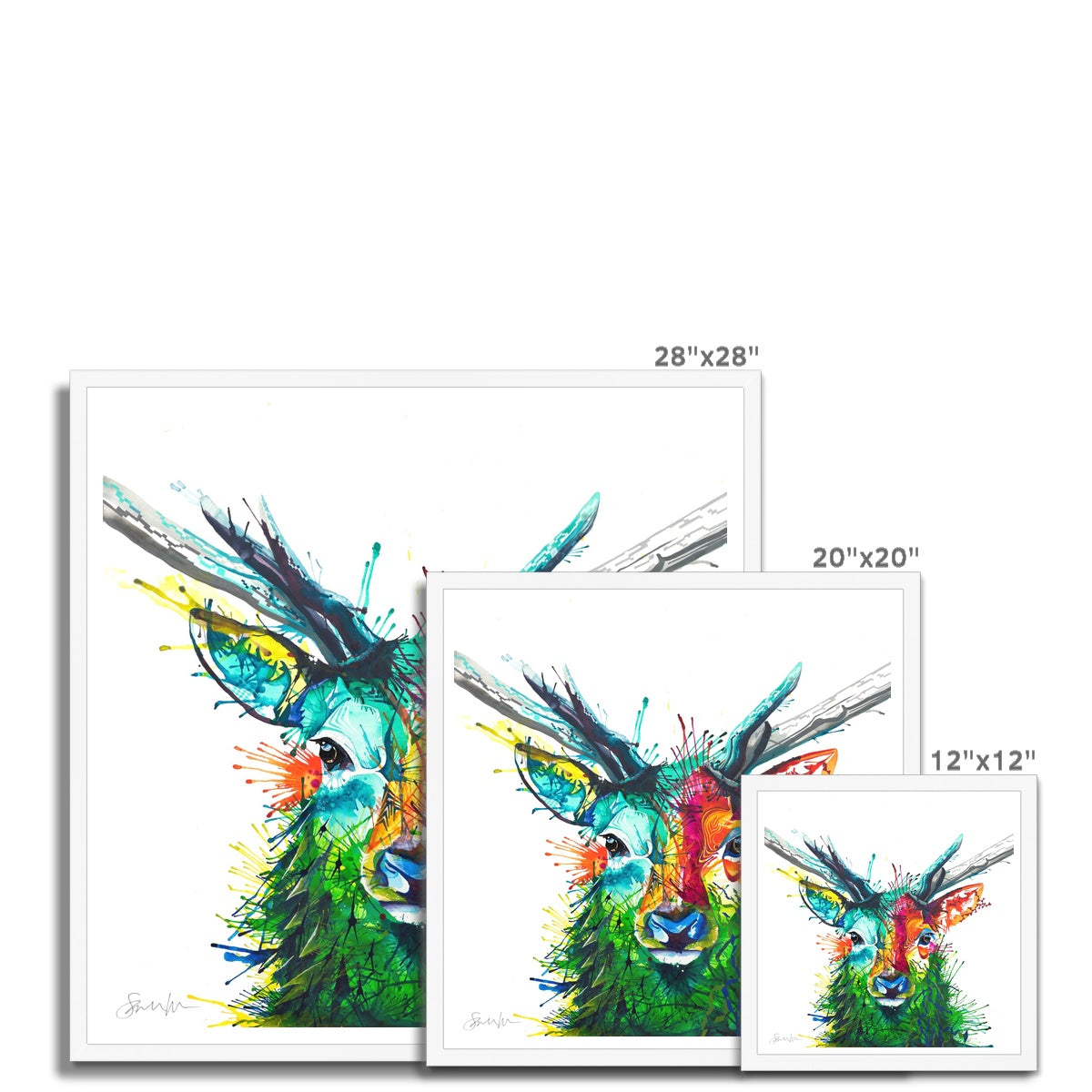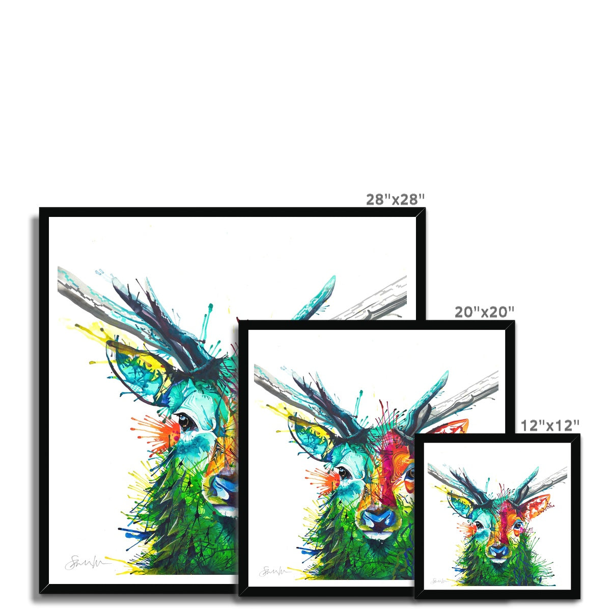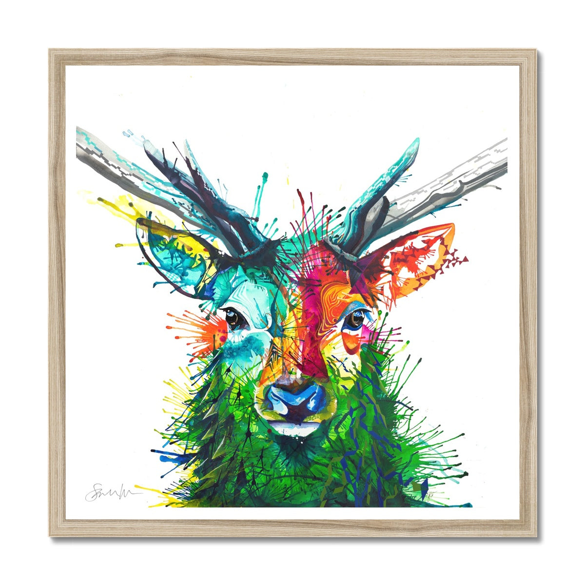 Bring a burst of happiness to your room with this framed colourful stag picture.
