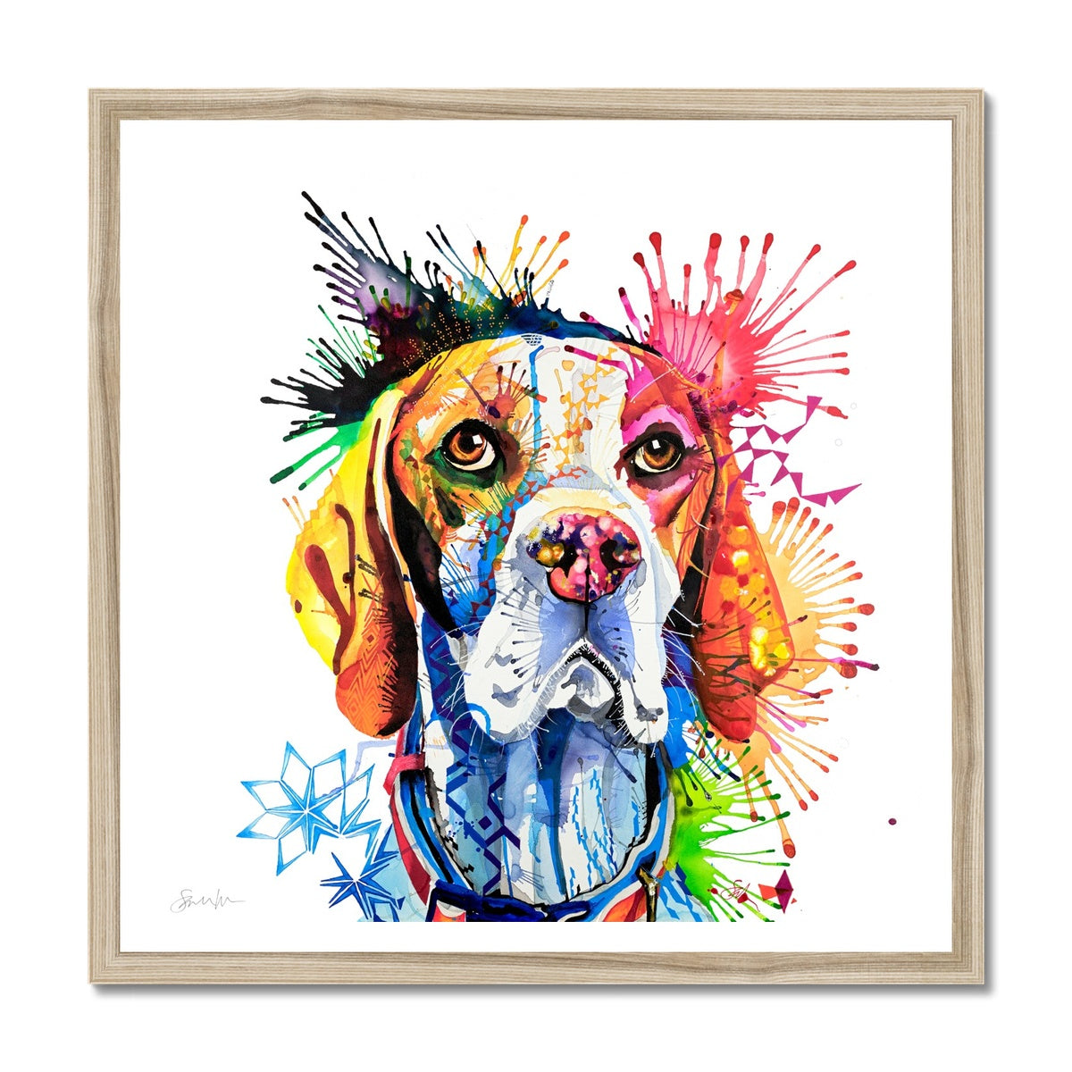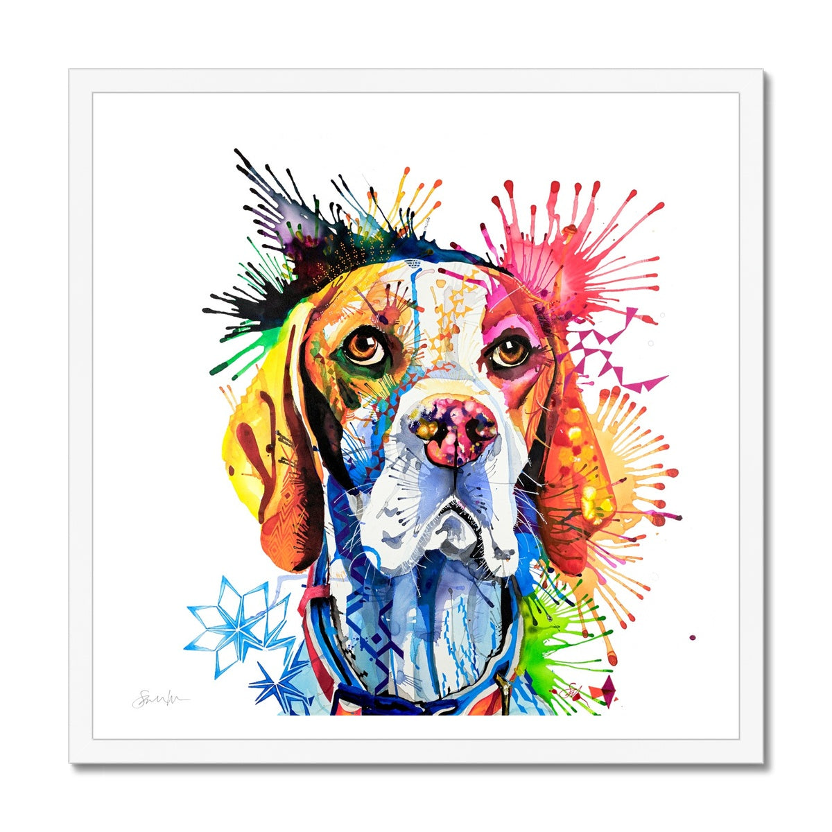 Sarah has been painting animals in this style for nearly a decade, perfecting her unique painting method, a wonderous mix of hand painted geometric pattern and fluid paint splashes. She has a talent for making animals come alive, like they’re waiting to jump off the wall and have a cuddle. Easy to fall in love with them, because they feel like your best friend.