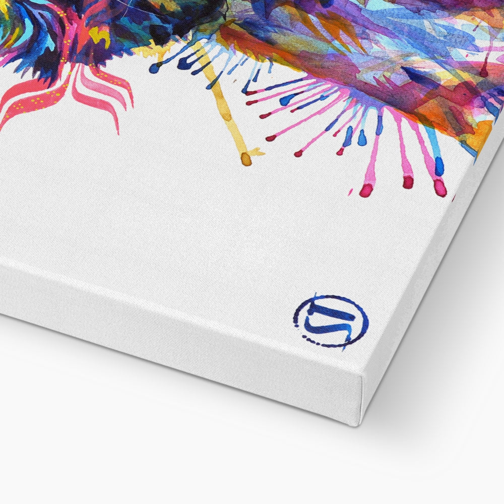 Sarah has been painting animals in this style for nearly a decade, perfecting her unique painting method, a wonderous mix of hand painted geometric pattern and fluid paint splashes. She has a talent for making animals come alive, like they’re waiting to jump off the wall and have a cuddle. Easy to fall in love with them, because they feel like your best friend.