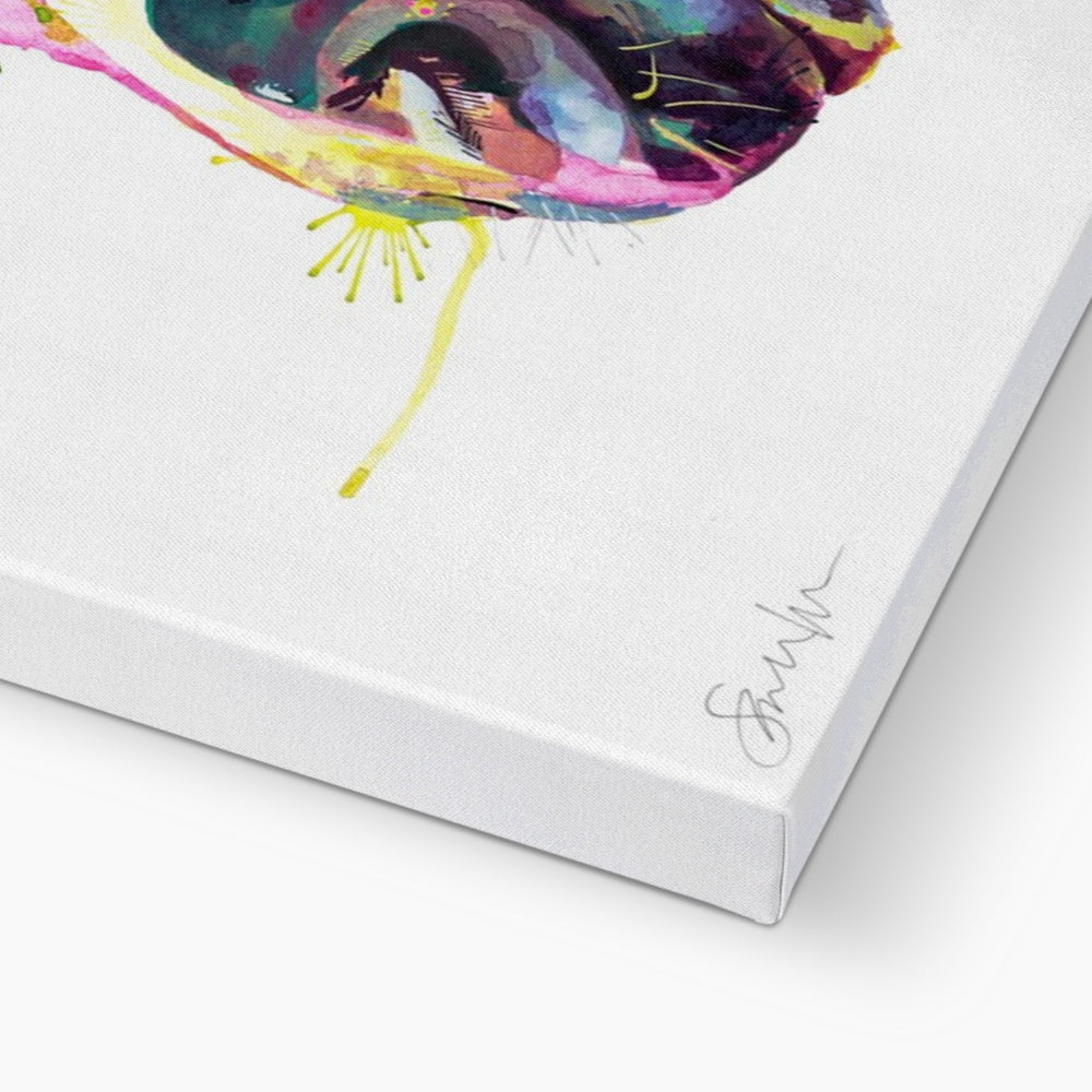 Sarah has been painting animals in this style for nearly a decade, perfecting her unique painting method, a wonderous mix of hand painted geometric pattern and fluid paint splashes. She has a talent for making animals come alive, like they’re waiting to jump off the wall and have a cuddle. Easy to fall in love with them, because they feel like your best friend.