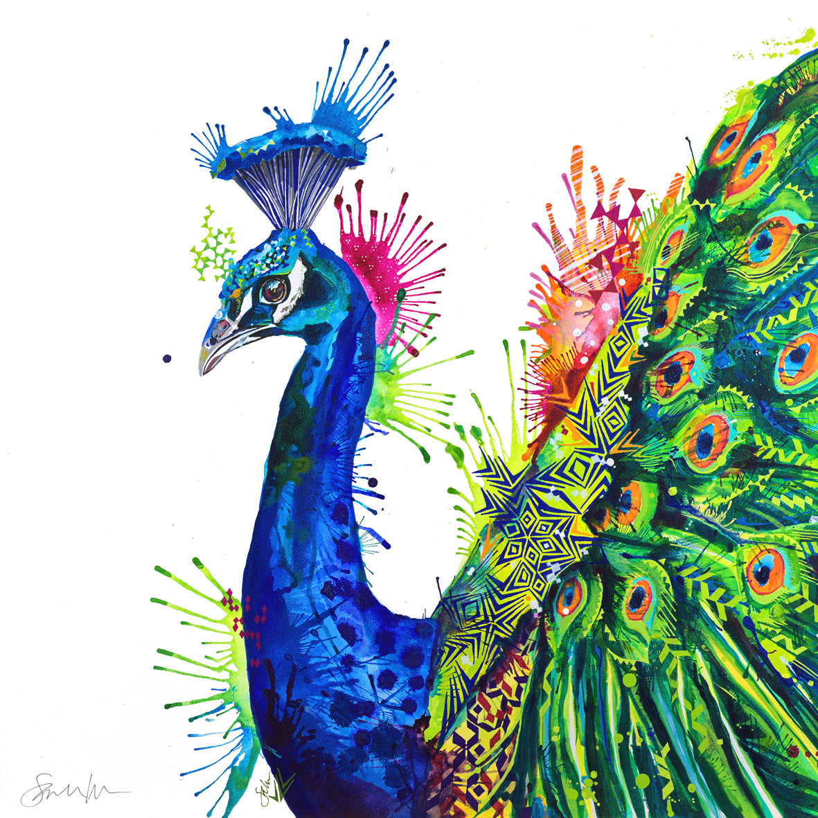 Peacock Artwork | Wall Art | Framed Prints | Sarah Taylor | Modern Art | Framed Wall Art | Abstract Art | Framed Art | Bright Wall Art | Colourful Animal Art
