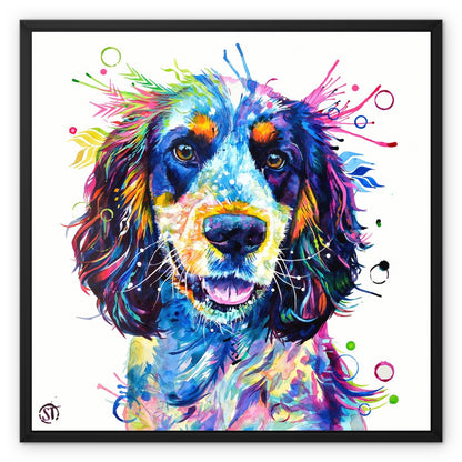 Transform your space with this luxury top of the range, framed canvas dog painting.