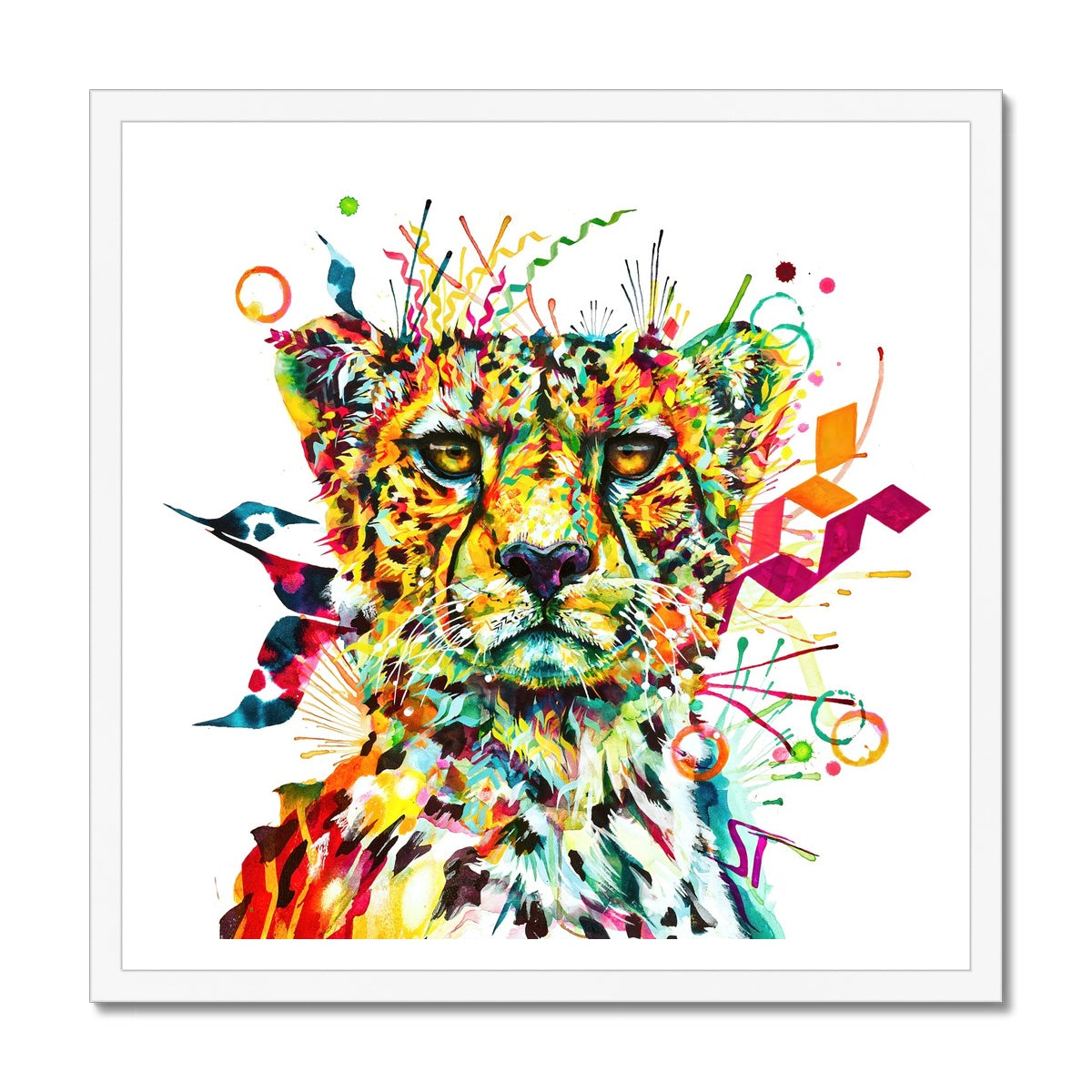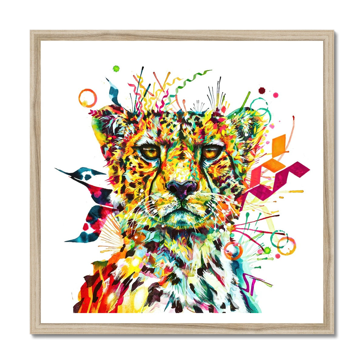 Bring a burst of happiness to your room with this framed colourful cheetah art.